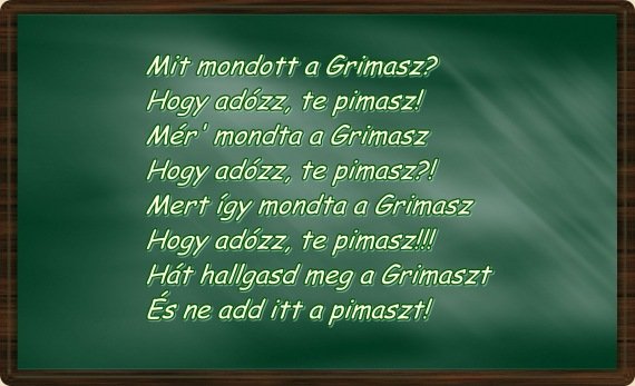 A begyakorlott művelet eredményeként a ,,Kalózmanó” felirat helyett az „Adózz, pimasz, itt van Grimasz!” szlogen válik láthatóvá. A váratlan fordulat mindig beválik, a hirtelen jött rossz hír teljesen letaglózza az ellenfelet!