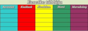 A negyedik oszlopba, a zöld színűbe kerül az az összeg, amely a manózásra megy el. (A zöld szín nyugtatja a szemet, és nem is leszek olyan ideges, ha a fizetendő összegre nézek!)